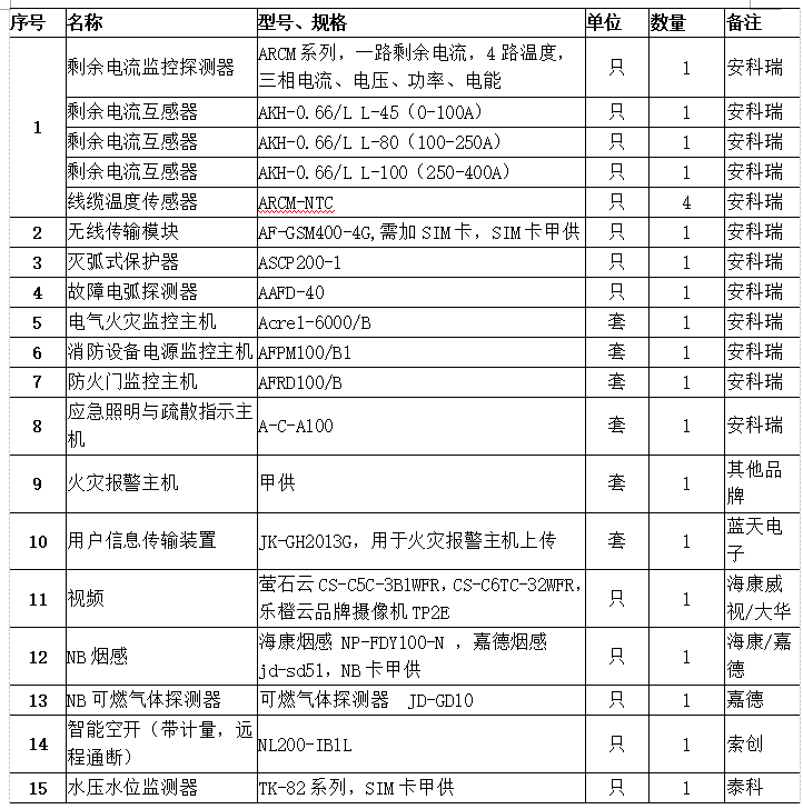 注:以下配置為針對(duì)1個(gè)回路選型,其中剩余電流互感器應(yīng)根據(jù)現(xiàn)場回路電流大