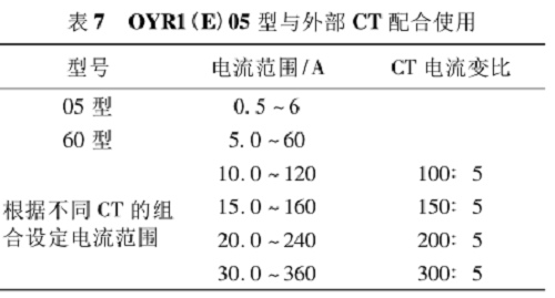 由表7可見,采用60型保護器,其電流為 60 A;但采用05型與外部CT組合后,電流可至360A。當然,輸出繼電器的觸點容量也應相應變大。