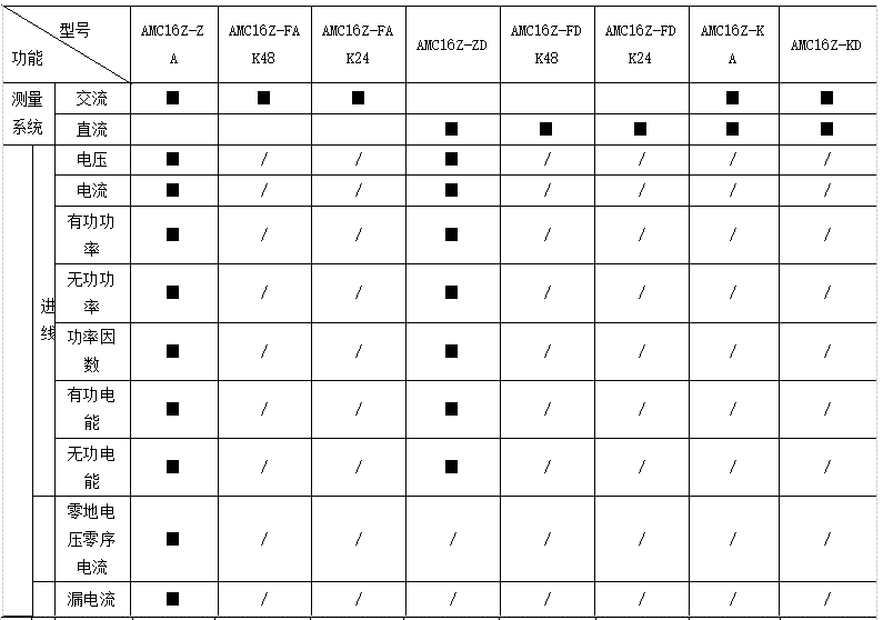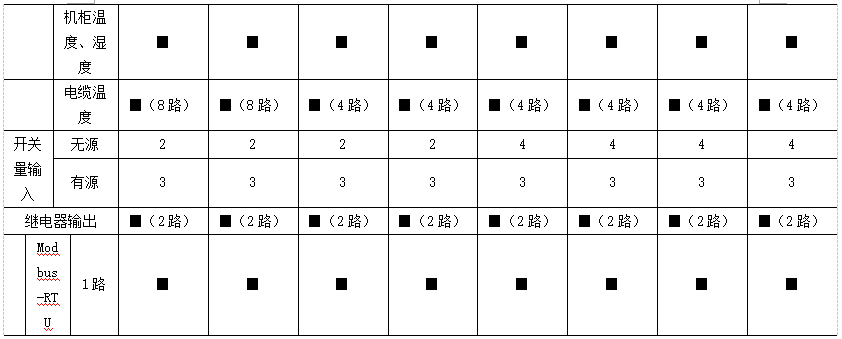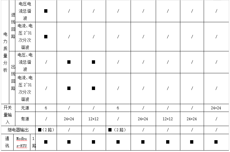遙測:三相電壓、電流、有功功率、無功功率、視在功率、功率因數、有功電能、無功電能、電纜溫度,系統頻率、零序電流、零地電壓、漏電流、機柜溫度、機柜濕度、開關狀態、電壓/電流諧波含量、電流/功率;