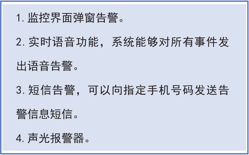 安科瑞智能配電室綜合監(jiān)控系統(tǒng)具有實(shí)時(shí)告警功能,系統(tǒng)能夠?qū)ε潆娛覝囟取穸取⒂泻怏w、設(shè)備故障或通信故障等事件發(fā)出告警。告警方式如右圖所示: