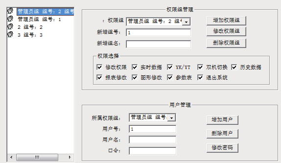為保障系統(tǒng)安全穩(wěn)定運(yùn)行,設(shè)置了用戶權(quán)限管理功能。通過用戶權(quán)限管理能夠防止未經(jīng)授權(quán)的操作(如遙控的操作,數(shù)據(jù)庫修改等)。可以定義不同級(jí)別用戶的登錄名、密碼及操作權(quán)限,為系統(tǒng)運(yùn)行、維護(hù)、管理提供可靠的安全保障。