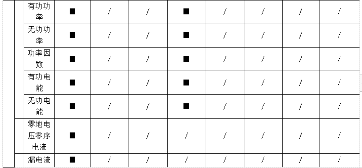 遙信:過電流2段閥值越限、過/欠壓、過功率告警、缺相、過頻率、欠頻率越限、零地電壓、零線電流、溫/濕度告警,開關(guān)狀態(tài)、開關(guān)跳閘;