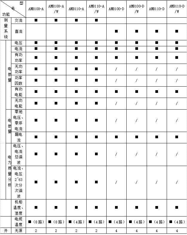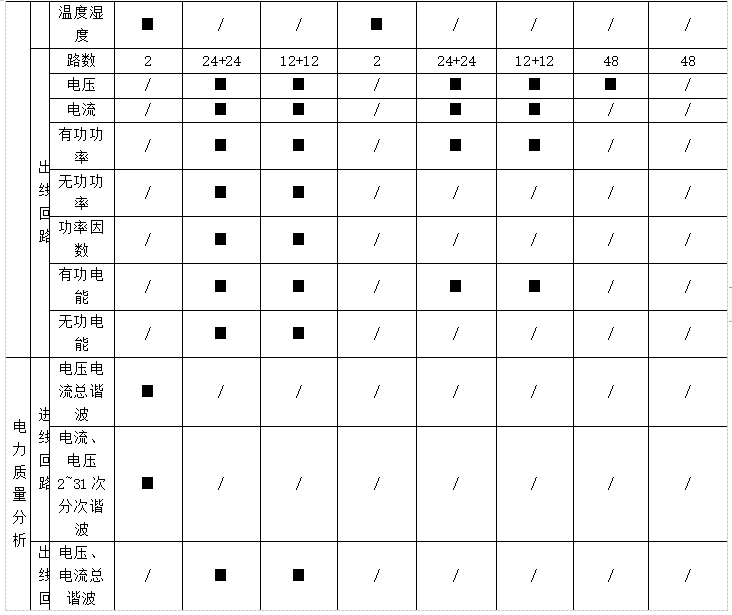 遙測:三相電壓、電流、有功功率、無功功率、視在功率、功率因數(shù)、有功電能、無功電能、電纜溫度,系統(tǒng)頻率、零序電流、零地電壓、漏電流、機柜溫度、機柜濕度、開關(guān)狀態(tài)、電壓/電流諧波含量、電流/功率;